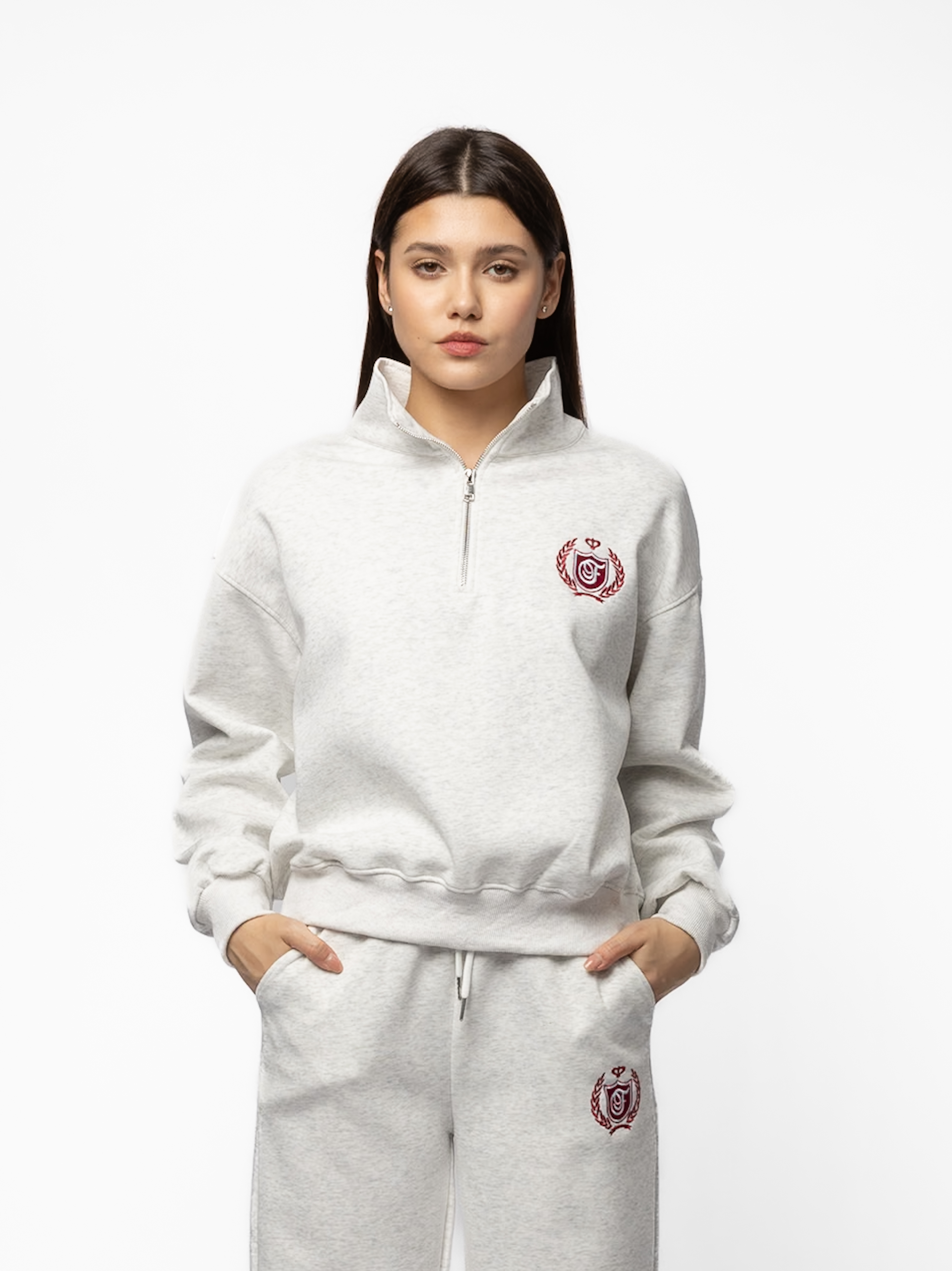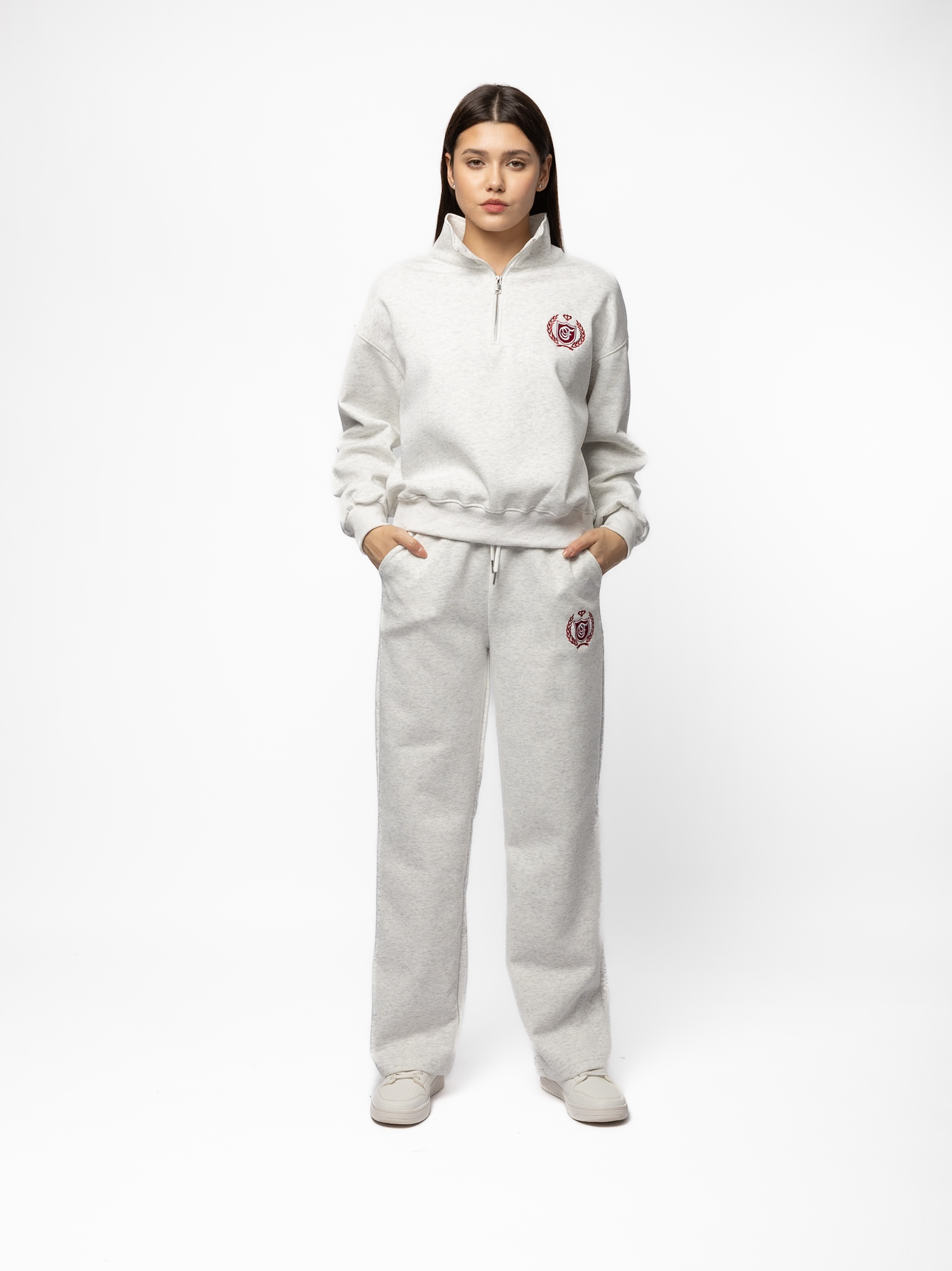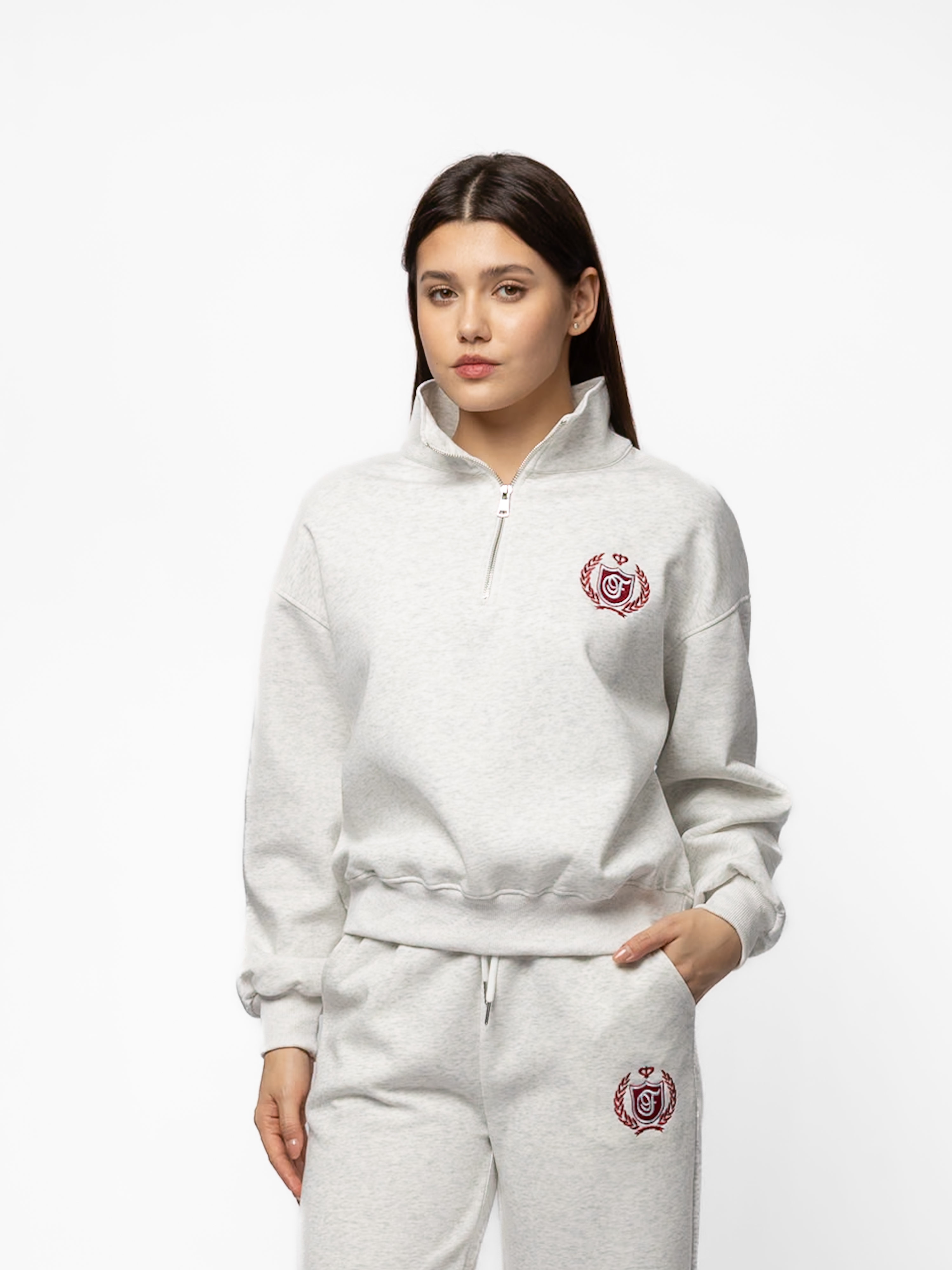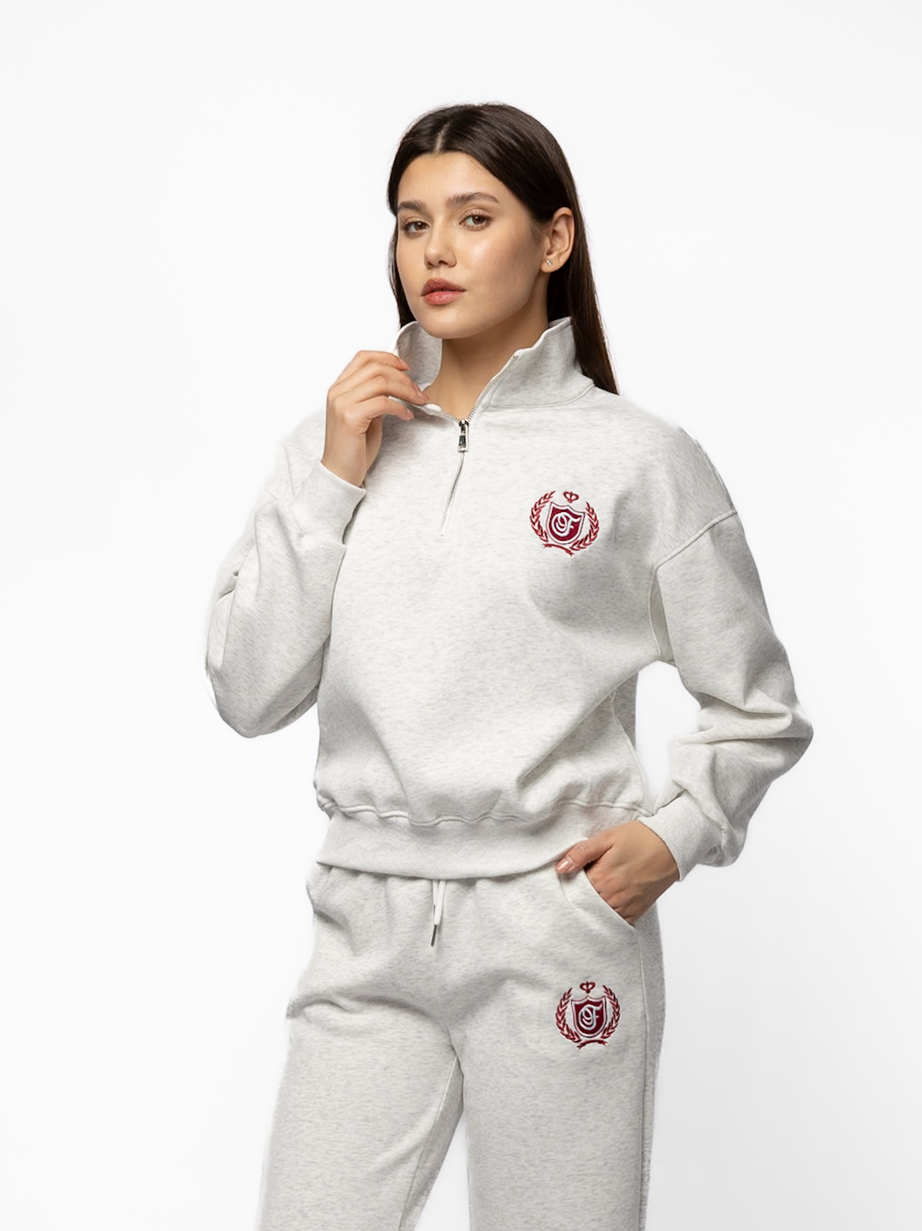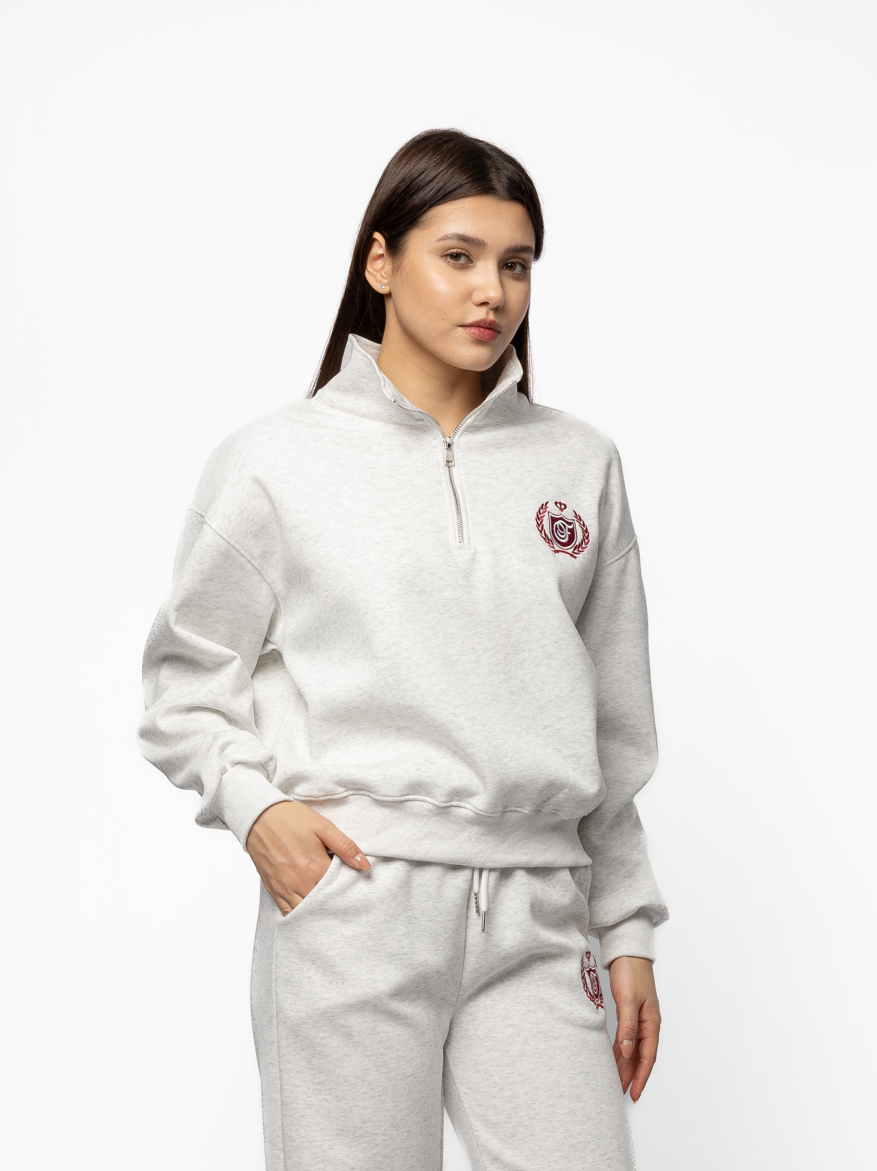 ТОЛСТОВКА СТОЙКА ВОРОТ КОРОТКАЯ С МАЛЕНЬКОЙ ВЫШИВКОЙ НА ГРУДИ (3ЦВ) КОМПЛЕКТ 48020