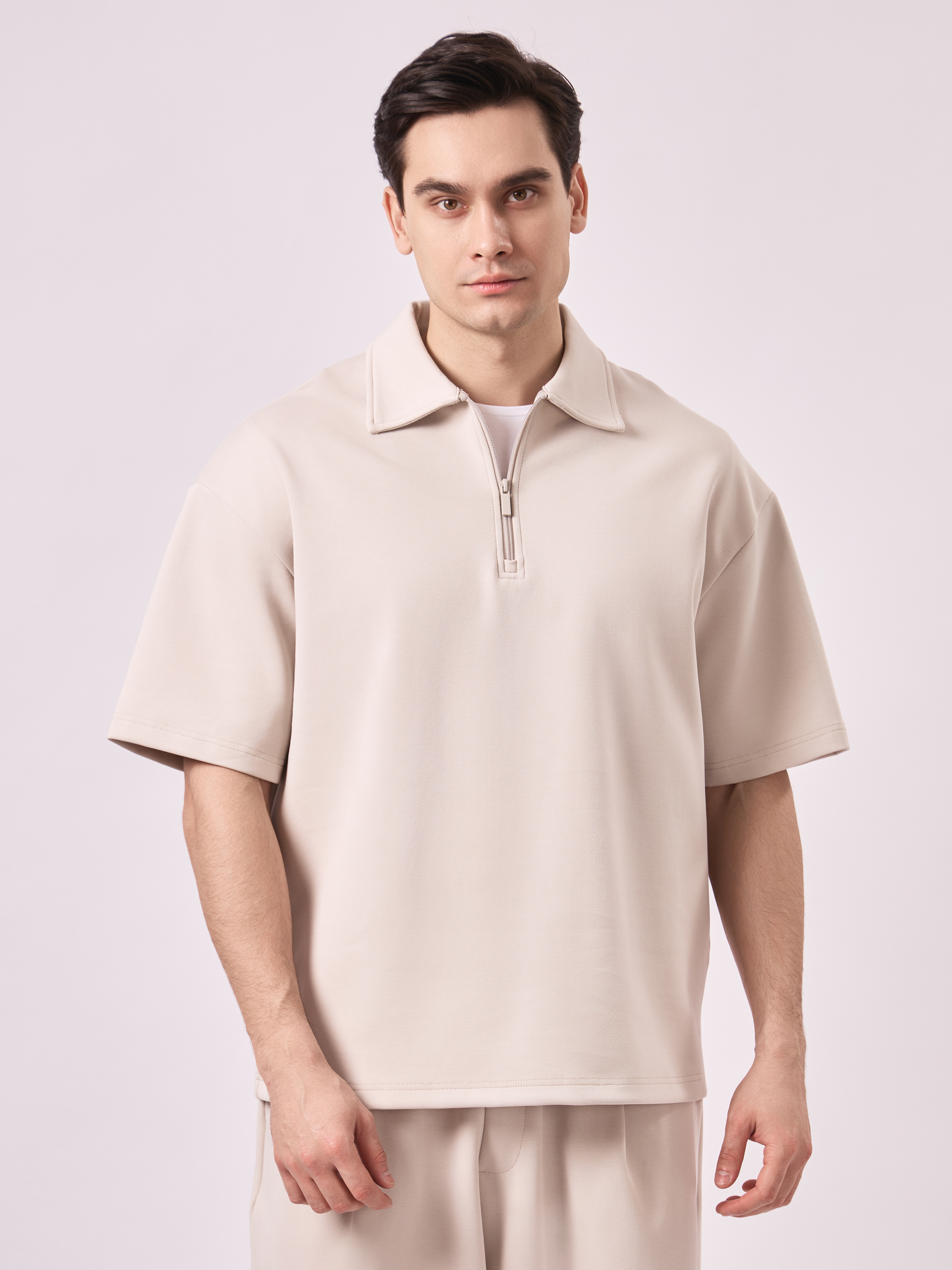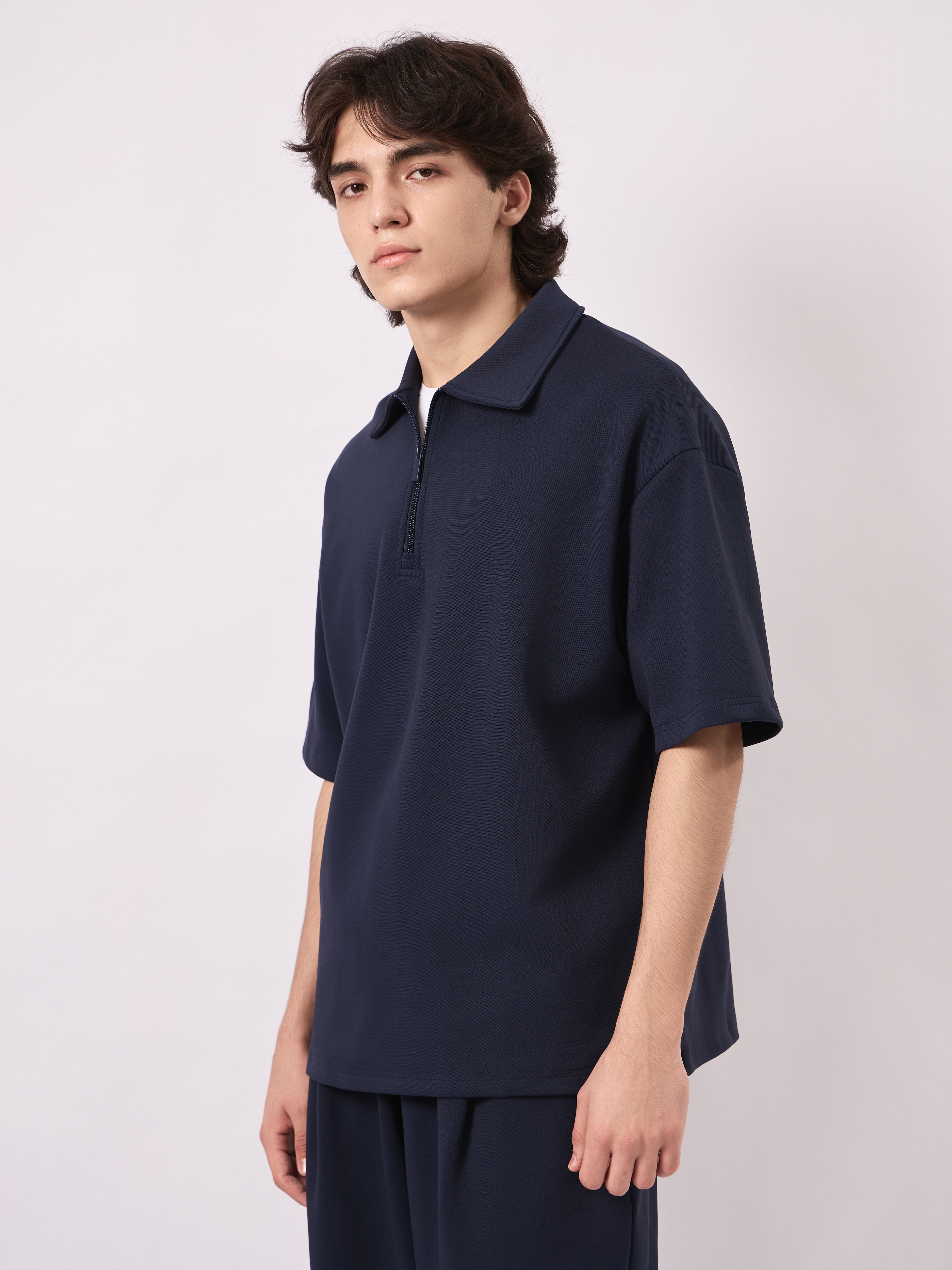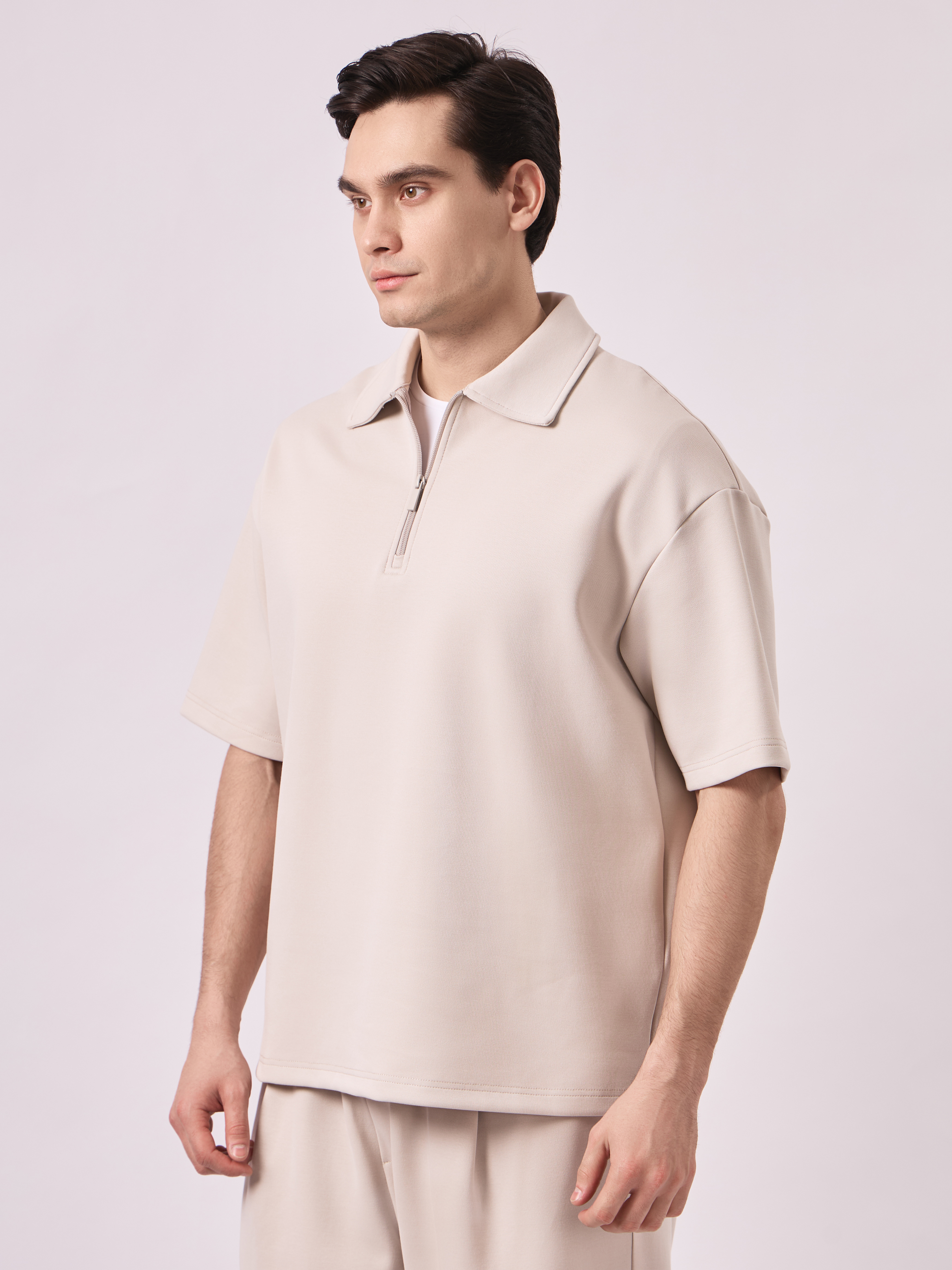 ТЕННИСКА ОВЕРСАЙЗ НА ЗАМКЕ ВОРОТ ИЗ ТКАНИ МЕЛКАЯ ТЕКСТУРА (3ЦВ) КОМПЛЕКТ 4552