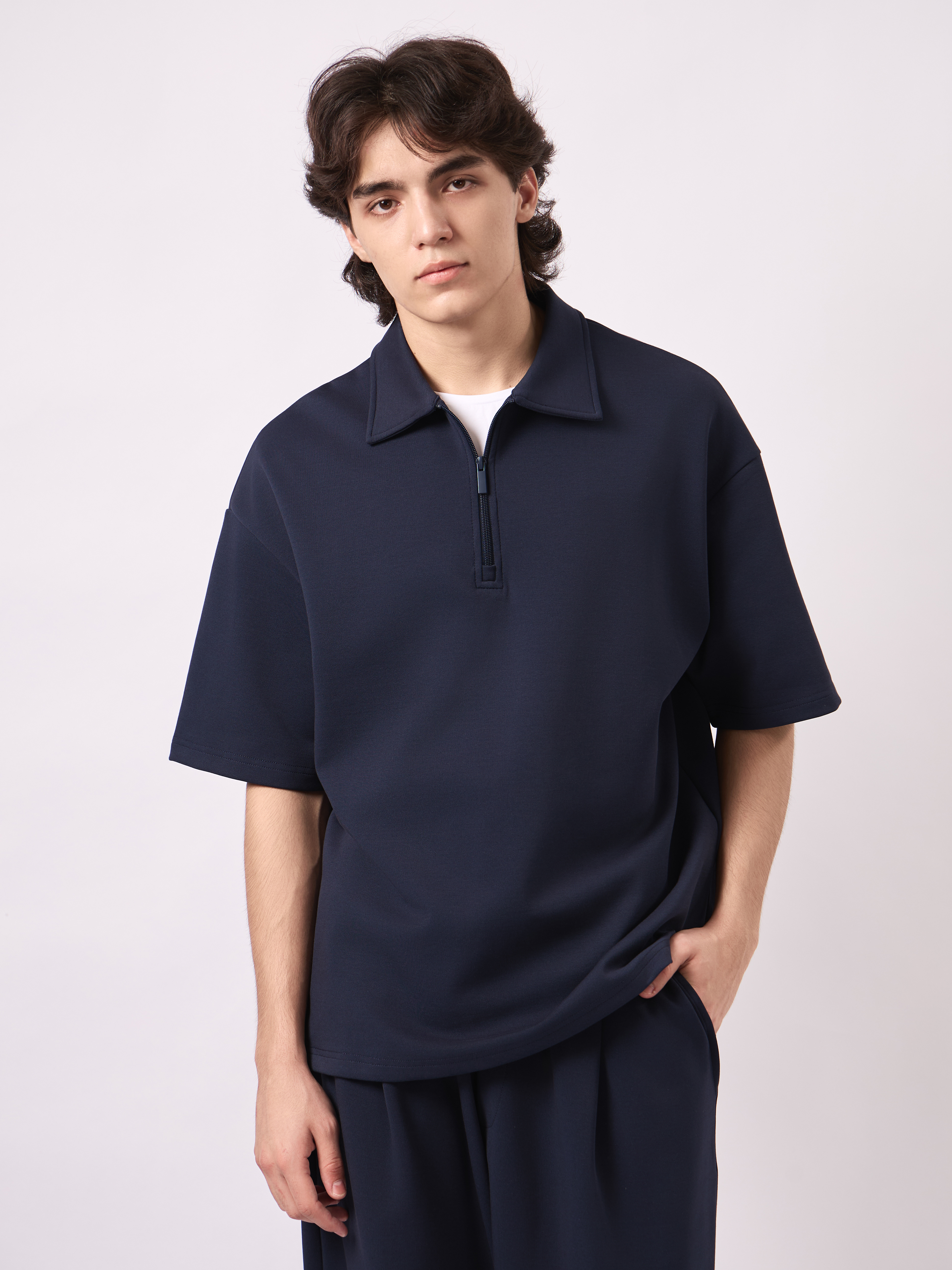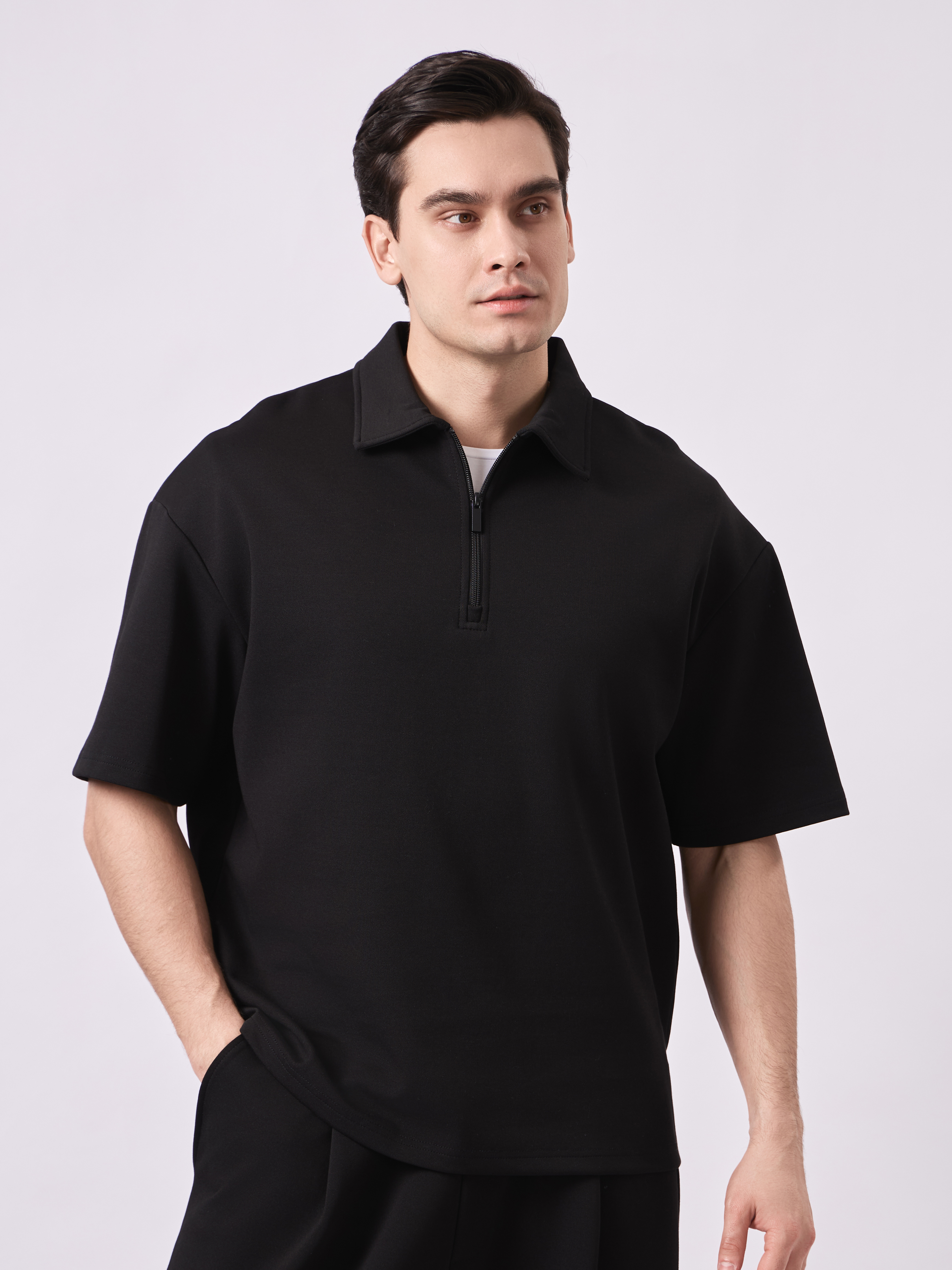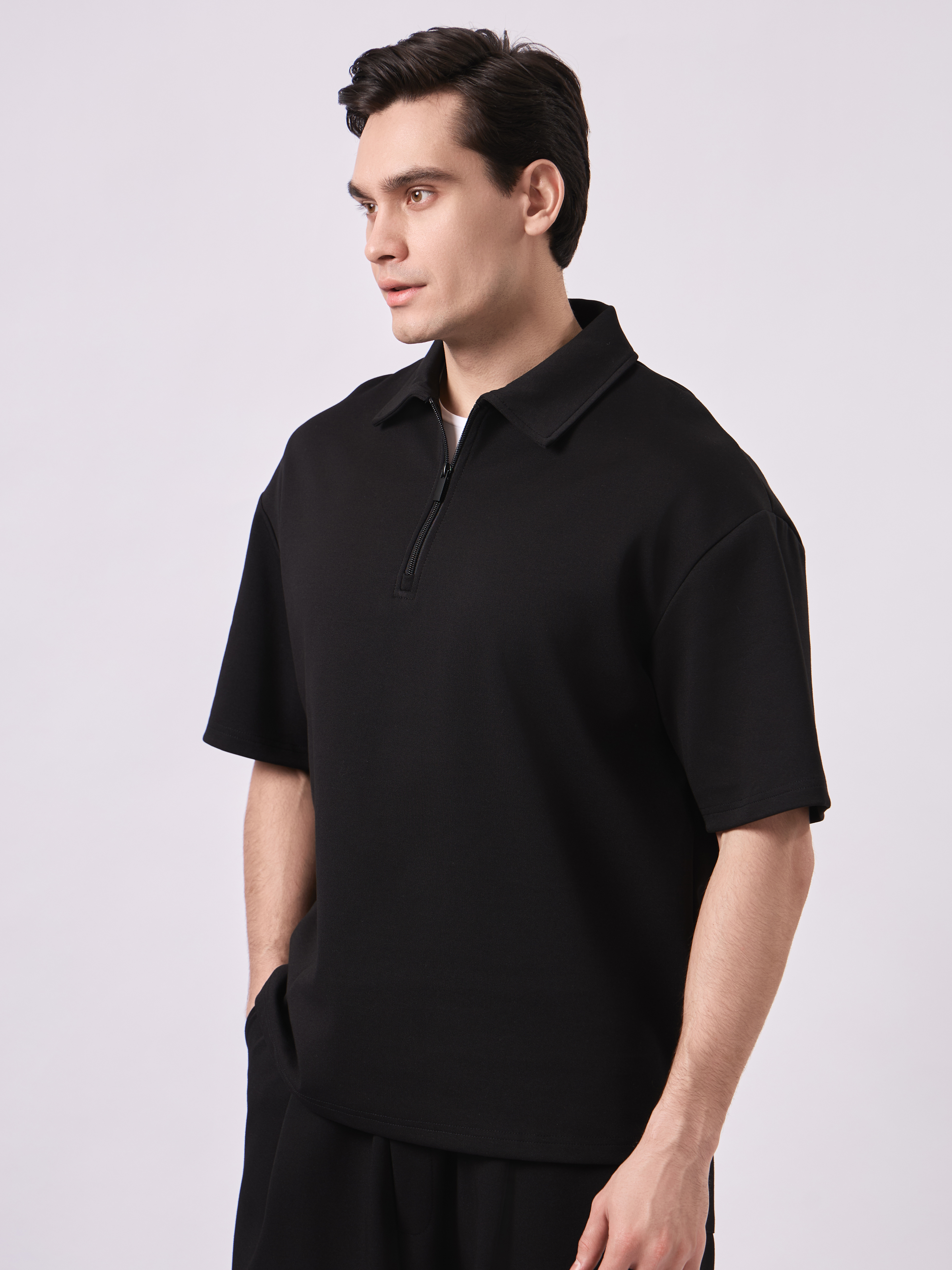 ТЕННИСКА ОВЕРСАЙЗ НА ЗАМКЕ ВОРОТ ИЗ ТКАНИ МЕЛКАЯ ТЕКСТУРА (3ЦВ) КОМПЛЕКТ 4552